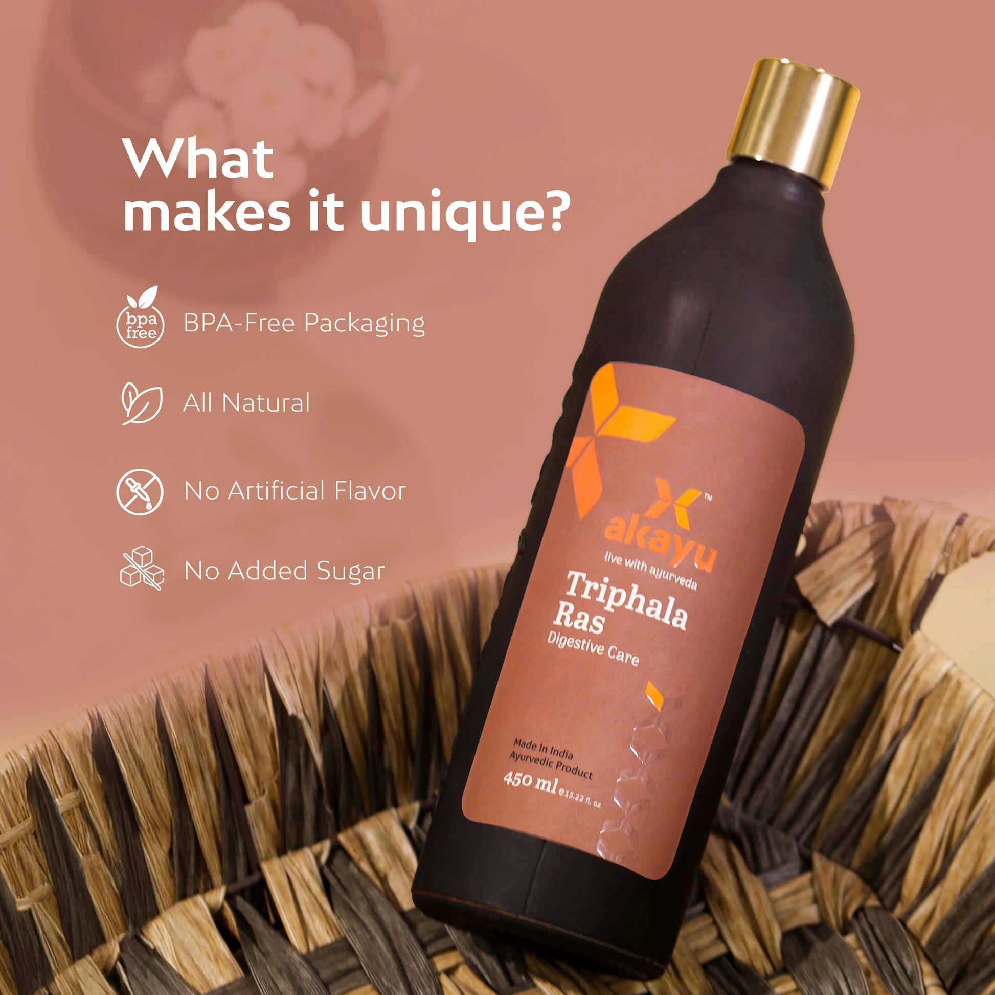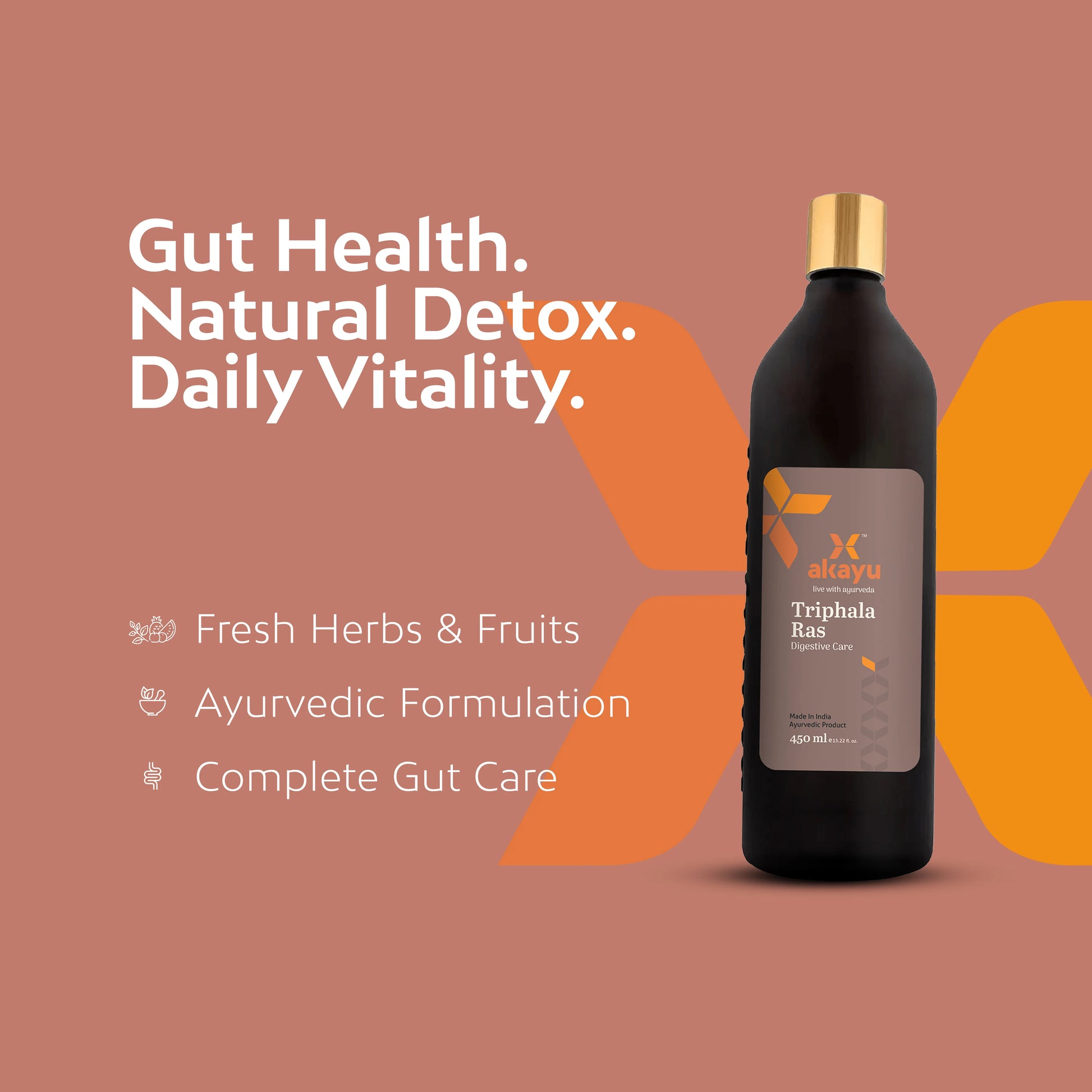 Akayu Triphala Ras is a holistic herbal formulation to promote excellent gut health and strong digestion. It contains all pure and natural ingredients and is a natural way to support gut health by promoting good bacteria.